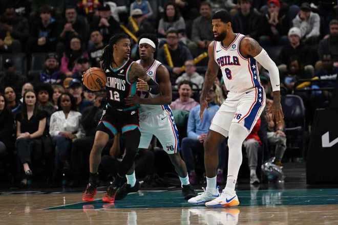 進(jìn)入加時賽比拼,莫蘭特上籃與韋爾斯暴扣取得4分優(yōu)勢,馬克西與恩比德各得2分追到132-132。莫蘭特中投繼續(xù)得分,喬治與馬克西各得2分再度反超比分,莫蘭特拉桿上籃繼續(xù)追到136-136。馬克西助攻埃奇庫姆命中三分準(zhǔn)絕殺,科沃德扳平三分不中,最終76人加時灰熊終結(jié)3連敗。