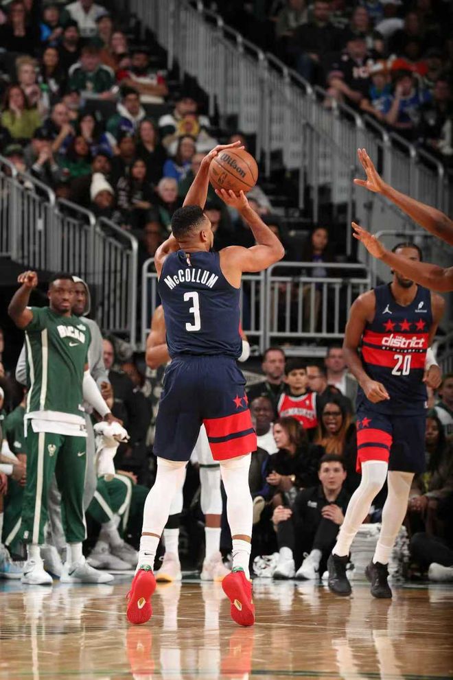 進(jìn)入第四節(jié)比賽,雙方持續(xù)交替領(lǐng)先纏斗,雙方不斷緊咬比分鏖戰(zhàn),麥科勒姆最后時(shí)刻命中關(guān)鍵中投準(zhǔn)絕殺跳舞慶祝。雄鹿立即請(qǐng)求暫停,字母哥壓哨中投絕殺不中,最終雄鹿爆冷113-114惜敗奇才。