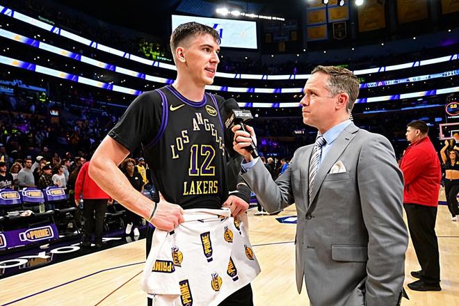 本場比賽中,湖人的先發(fā)小前鋒杰克-拉拉維亞(Jake LaRavia)的表現(xiàn)算得上是令人刮目相看。拉拉維亞全場出場37分02秒,投籃12中8,三分線外6中3,罰球3中2,得到了21分9籃板2助攻2搶斷1蓋帽的數(shù)據(jù),其中還包括了4個(gè)前場籃板,還有1次失誤和5次犯規(guī),正負(fù)值為0。拉拉維亞在進(jìn)攻端展現(xiàn)出了全面的得分能力,他能夠在對手內(nèi)線制造威脅,他展現(xiàn)出了超強(qiáng)的前場籃板爭搶能力,他還在三分線外保持了足夠的穩(wěn)定性。除此之外,拉拉維亞在防守端也同樣是打出了高水準(zhǔn)的表現(xiàn),他也是能夠?qū)⒆约涸诜朗囟说膬?yōu)勢發(fā)揮出來,簡直是活力四射??傮w來看,拉拉維亞在攻防兩端的表現(xiàn)都算得上是頂級水準(zhǔn),他的一系列出色表現(xiàn)也是球隊(duì)在這樣一場艱難的比賽中最終戰(zhàn)勝對手的重要因素。