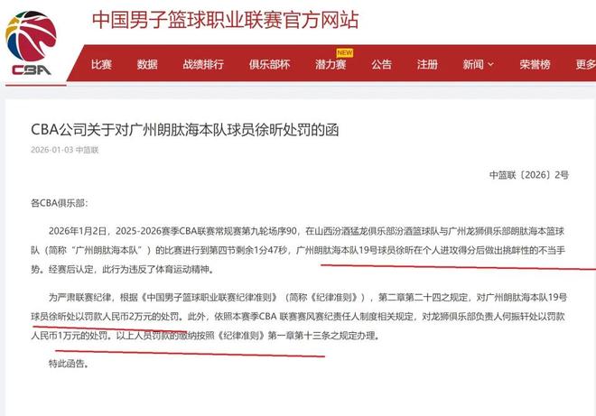 CBA公司在昨晚深夜11點開出本賽季的第二張罰單,廣州隊員徐昕被罰款了,俱樂部負責人何振軒有連帶責任也遭到處罰。
