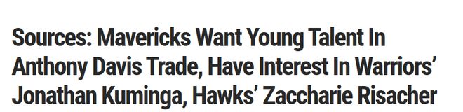 阿夫塞斯寫道:“消息人士此前透露,若獨(dú)行俠最終決定交易戴維斯,他們會優(yōu)先爭取至少一名實(shí)力出眾的年輕球員。消息人士還稱,在那些內(nèi)部討論過引進(jìn)戴維斯的球隊中,獨(dú)行俠對勇士的庫明加和老鷹的里薩謝很感興趣?!?/p>