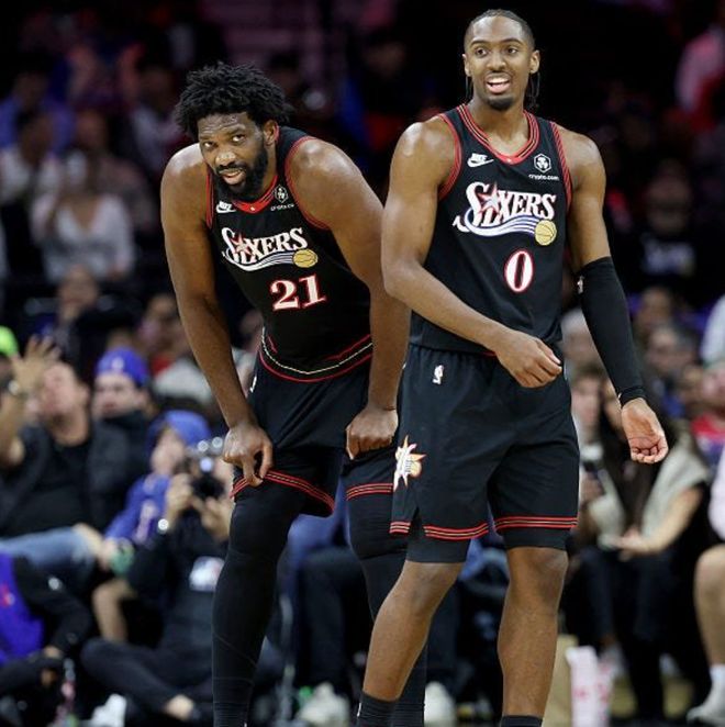 此役他與埃奇庫姆成為費城隊史首對拿到25+4三分+2蓋帽的組合。