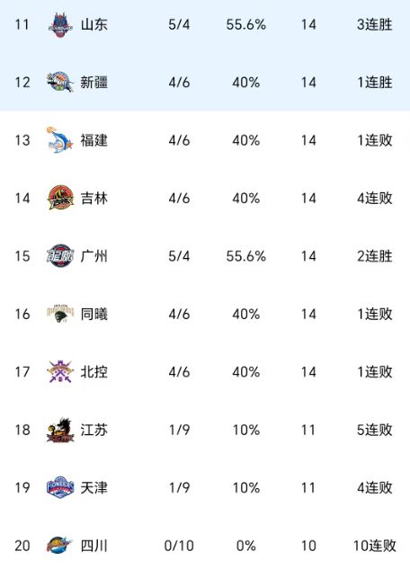 北京時間1月4日晚上,CBA常規(guī)賽第十輪繼續(xù)進行,總共五場比賽,遼寧男籃大勝吉林男籃,山西男籃大勝江蘇男籃,天津男籃不敵廣州男籃,福建男籃輸給新疆男籃,山東男籃逆轉(zhuǎn)同曦男籃。
