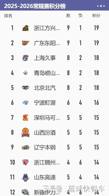 附:CBA積分榜最新排名