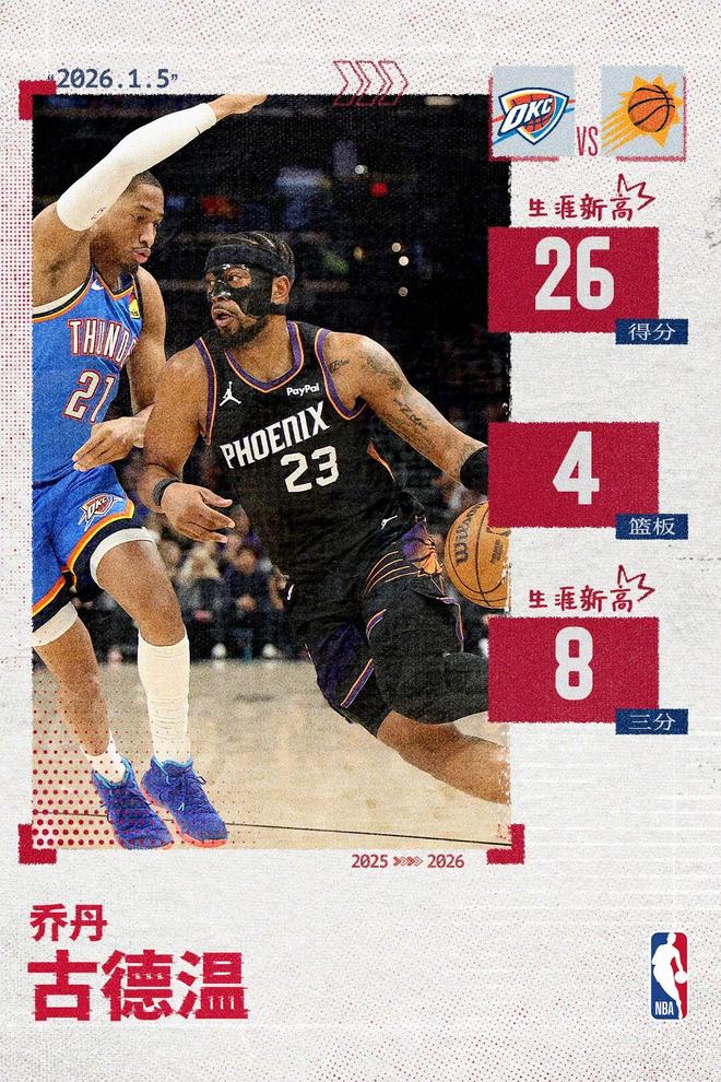 他還是太陽隊史上第5個替補出場砍下至少25分同時投進至少8記三分的球員。之前4人是卡梅隆·約翰遜、沙梅特、基德和亞力克-彼得斯。