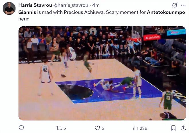 這場比賽對于雄鹿球迷來說出現(xiàn)了驚魂一幕,阿丘瓦與揚尼斯卡位,阿丘瓦倒地了隨后阿丘瓦直接拉著揚尼斯的小腿將揚尼斯撂倒,這個動作非常的危險,字母哥隨即大罵阿丘瓦。