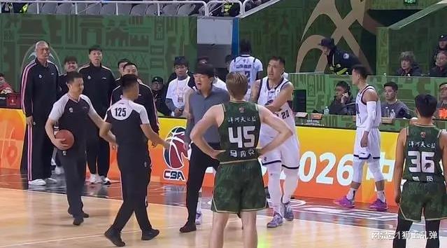此役客戰(zhàn)南京天之藍,本就是一場勢均力敵的較量。開局階段,雙方你來我往,分差始終沒能拉開。但比賽的轉折點,出現在裁判頻繁的爭議判罰上。作為球隊攻防轉換的關鍵一環(huán),外援克里斯在一次進攻回合的對抗中,由于與對手發(fā)生口角,而被裁判葉圳直接出示技術犯規(guī);而在第3節(jié)比賽,克里斯籃下強攻得手后,本來對手有犯規(guī)動作,理應吹罰2+1,可裁判居然沒有理會,克雷斯用一個慶祝動作以示抗議,結果裁判葉圳惱羞成怒,反倒給了克里斯一個T,算上之前的一個T,克里斯本場比賽領到兩個T,被直接當場驅逐。兩T離場的判罰,讓山東高速的進攻體系瞬間出現缺口,場邊的邱彪再也按捺不住怒火,沖向裁判理論,并將外套狠狠摔在了地上,結果同樣難逃被驅逐的命運。