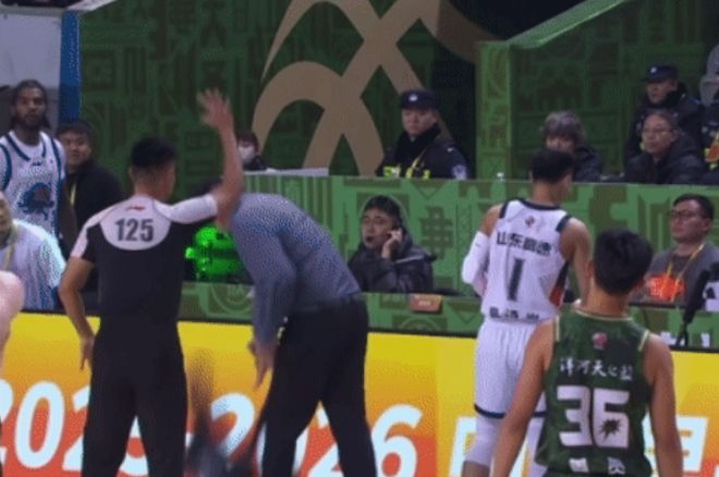 對此,山東主帥邱彪怒不可遏,他脫掉西服暴怒摔在地板上,并且不斷去對臨場裁判員進行指責,不滿裁判的吹罰。邱彪被連續(xù)吹罰兩T驅逐取消比賽資格,但邱彪依然是情緒激動,還在場內繼續(xù)指責與抱怨。