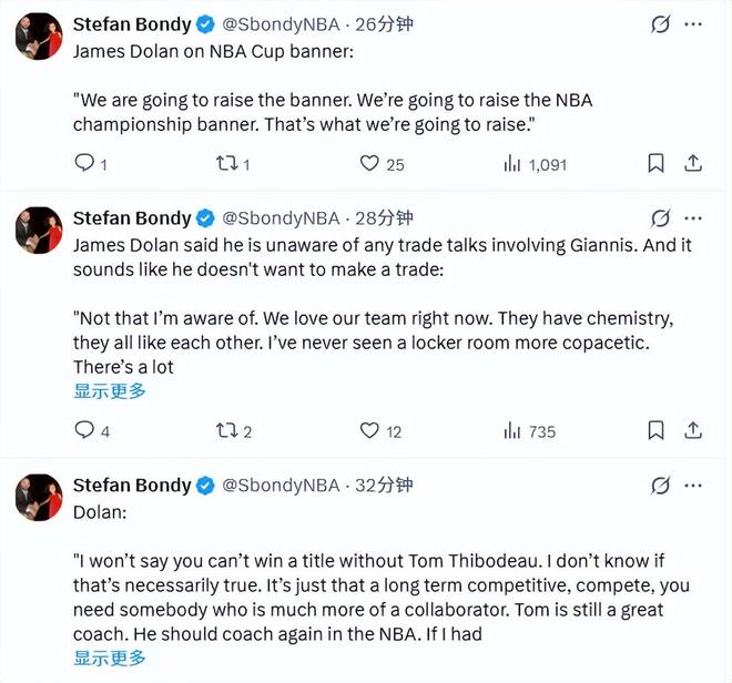 此前的交易流言中,尼克斯經(jīng)常和字母哥聯(lián)系在一起。談到相關(guān)話題時(shí),多蘭表示,他并不知曉任何涉及字母哥的交易談判,而且聽(tīng)他的口氣,球隊(duì)根本無(wú)意推動(dòng)交易。