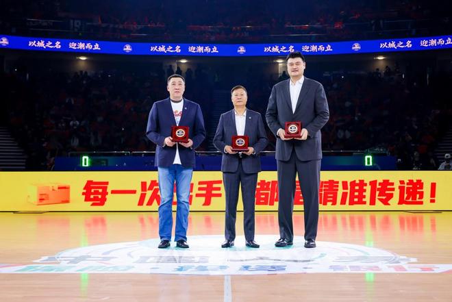 19時(shí)15分,燈光聚焦場(chǎng)館D通道,李秋平、姚明、章文琪三位名宿并肩出現(xiàn),領(lǐng)取俱樂部特意準(zhǔn)備的功勛紀(jì)念章。站在臺(tái)上,上海男籃的幾位名宿并未發(fā)表感言,但在臺(tái)上站定之時(shí),姚明拍了拍恩師李秋平的肩膀,時(shí)間仿佛切換回了30年前的模樣。