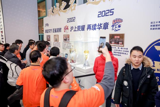 場(chǎng)館內(nèi),30周年紀(jì)念T恤與泛黃的舊球衣交相輝映;環(huán)廊里,“以城之名,迎潮而立”特展前圍滿了駐足的人群,2002年CBA總冠軍獎(jiǎng)杯與2025年CBA俱樂部杯冠軍獎(jiǎng)杯在展柜里靜靜對(duì)望,泛黃的紀(jì)念郵票、比賽票根將三十年時(shí)光拉得觸手可及。