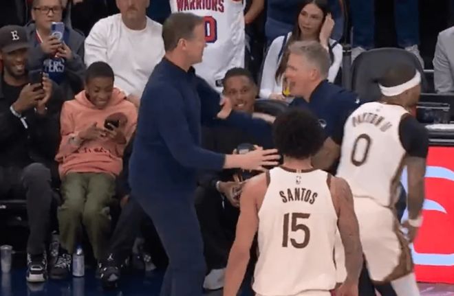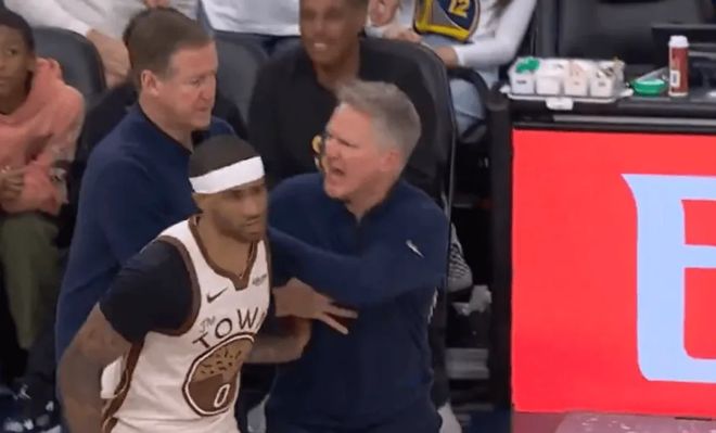 末節(jié)前半段,勇士主帥科爾認(rèn)為科林斯干擾球未吹,且?guī)炖镞€被吹罰犯規(guī),暴怒咆哮連吃兩T被驅(qū)逐。