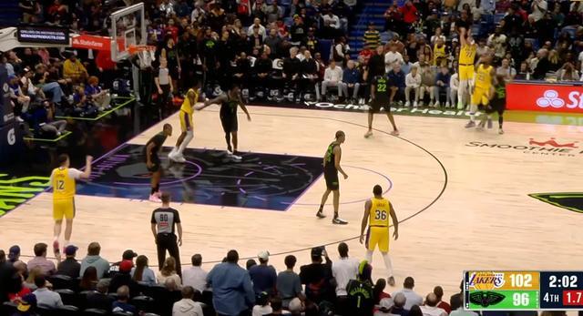末節(jié)詹姆斯獨(dú)自帶隊(duì)時(shí)期再度發(fā)力,連中兩記三分+送出助攻打出一波8-0的攻勢(shì)直接反超。這波攻勢(shì)可以說成為了比賽的轉(zhuǎn)折點(diǎn),湖人沒有被鵜鶘拉開,雙方糾纏到關(guān)鍵時(shí)刻,才有了湖人玄學(xué)定律的再次驗(yàn)證。