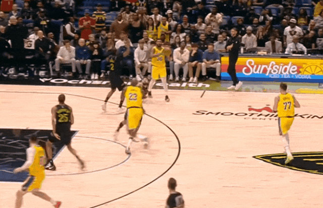 當(dāng)勒布朗是在移動(dòng)中接球,而非“盧卡單側(cè)被夾擊轉(zhuǎn)移弱側(cè),勒布朗從零開始創(chuàng)造”時(shí),湖人進(jìn)攻好很多。