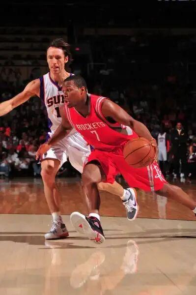 施羅德跟很多純快速球員不同,他有不錯的進攻技巧,能投能突,能里能外,他的投籃技巧也好:三分線外急停跳投,采用的是一段式;中投位置則采用兩段式。