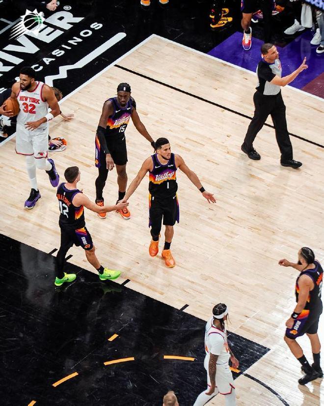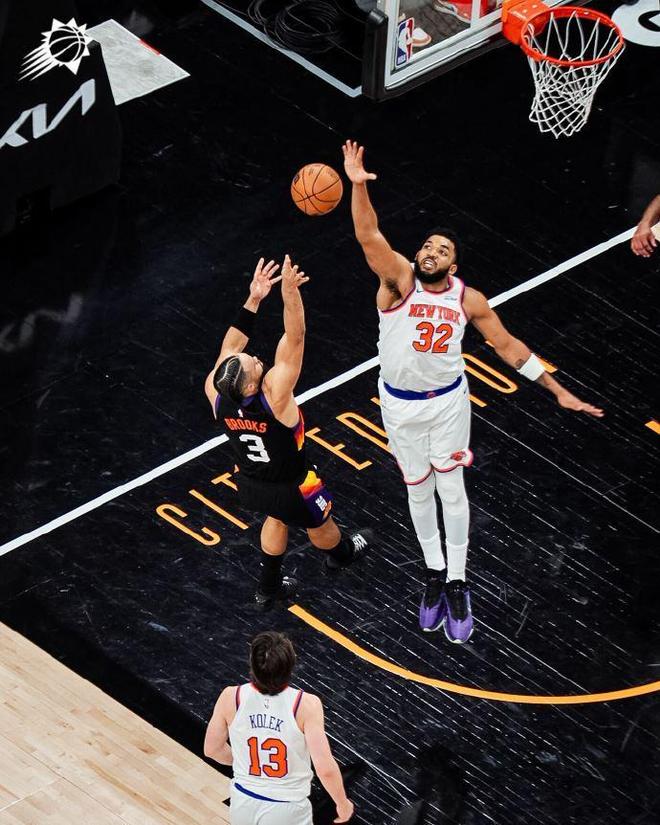 次節(jié)比賽,雙方進(jìn)攻火力升級(jí)均是單節(jié)轟下30+得分,尼克斯更是首次完成單節(jié)35+。太陽維持32-27領(lǐng)先,尼克斯連得5分追平,雙方隨后持續(xù)緊咬比分,開啟瘋狂拉鋸戰(zhàn)纏斗。第二節(jié)剩余時(shí)間雙方分差均是不超過5分,太陽單節(jié)34-37被追回3分,上半場(chǎng)結(jié)束太陽62-60領(lǐng)先尼克斯。前兩節(jié)比賽,尼克斯三分20中9,布倫森13分、克拉克森與麥克布萊德均12分;太陽三分21中8,布克17分4助攻與狄龍4記三分20分。