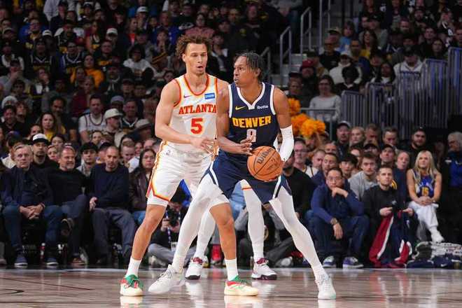 掘金過去兩場連續(xù)客場險勝76人與凱爾特人收獲2連勝,老鷹上一場主場117-100戰(zhàn)勝鵜鶘,本賽季首次交鋒掘金客場134-133險勝老鷹。本場掘金缺少約基奇、穆雷、瓊斯、卡約、瓦蘭,老鷹缺少麥科勒姆、里薩謝、基斯珀特與波爾津吉斯。首節(jié)開局掘金8-3領(lǐng)先,老鷹連得5分追平,皮克特三分命中,老鷹回敬一波7-0攻勢反超比分。雙方隨后持續(xù)交替領(lǐng)先纏斗至28-28,沃克上籃命中,首節(jié)結(jié)束掘金28-30落后老鷹。首節(jié)老鷹23中12,其中三分11中5,杰倫7分與沃克8分;掘金18中11超過6成準(zhǔn)星,其中三分9中5,布勞恩3中0得到0分。