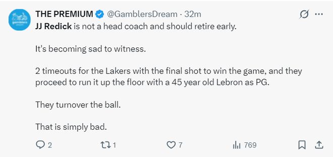 湖媒:雷迪克根本沒有請(qǐng)求暫停,這才是我對(duì)湖人失去信心的原因之一。這場比賽真的糟透了。