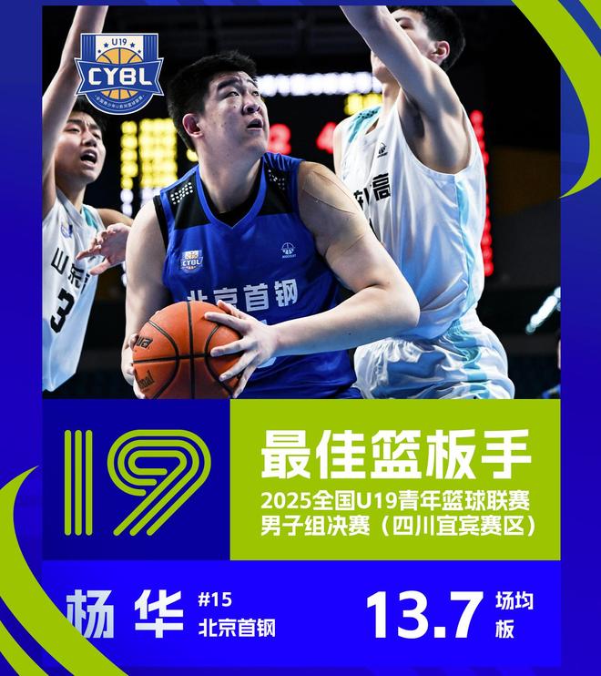 楊華在內(nèi)線占據(jù)絕對優(yōu)勢,對陣廣東宏遠青年男籃一戰(zhàn),他13投11中,罰球14中11,進攻效率超高。對陣浙江青年男籃一戰(zhàn),他14投10中,罰球5中3,得到23分16籃板。對陣四川青年男籃一戰(zhàn),他9投7中,三分球1中1,罰球2次全中,得到17分21籃板。