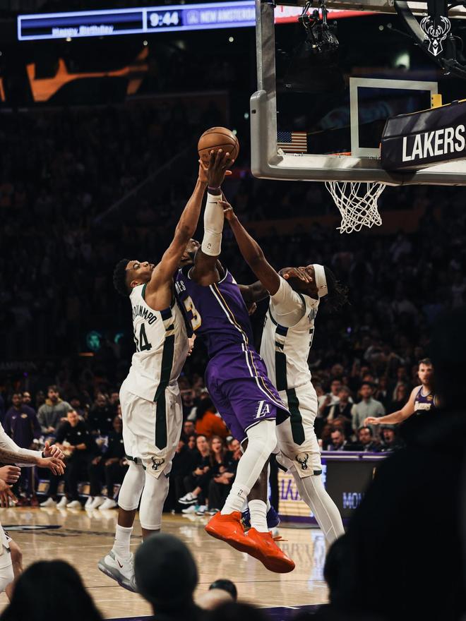 末節(jié)決戰(zhàn),克內克特、庫茲馬各有跳投得分,詹姆斯被搶斷,波特單打不中,詹姆斯轟進三分球,字母哥進攻犯規(guī),詹姆斯上籃打進,道格里弗斯請求暫停。詹姆斯搶斷字母哥,隨后助攻克內克特上籃打進,湖人挑戰(zhàn)判罰成功,字母哥失誤??藘瓤颂赝饩€打鐵,字母哥與范德比爾特在禁區(qū)斗法。詹姆斯高難度壓哨跳投取分,波蒂斯空位遠投不進,詹姆斯搶斷詹姆斯完成上籃,湖人打出了15比4的攻勢反超比分。