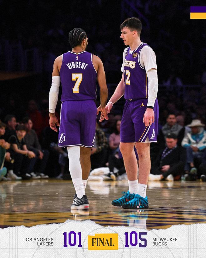 湖人隊,拉拉維亞8中5得到了13分2板2助2斷、范德比爾特7中4得到9分9板2助、斯瑪特9中3得到9分4板1助2斷、文森特6分2板2助、海斯6分2板1助。艾頓6中2得到4分5板,被雄鹿內線打爆??藘瓤颂?分1板、克萊伯2板1助。