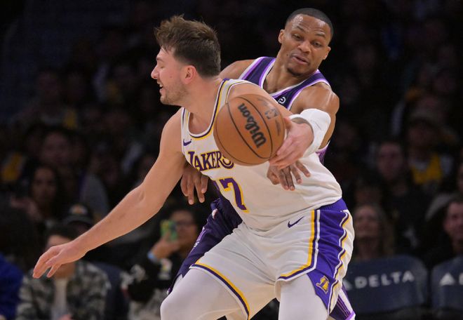 看一個(gè)湖人輸贏線:本賽季東契奇出戰(zhàn)的比賽,湖人輸球時(shí),東契奇球權(quán)占有率高達(dá)40.3%,上場就上場,還帶個(gè)球;湖人贏球時(shí),東契奇球權(quán)占有率37.4%。我相信湖人教練組統(tǒng)計(jì)數(shù)據(jù),比我們看到的更精準(zhǔn),老詹一次又一次帶著銜接段追分,而往往打到第四節(jié)東契奇回來時(shí),東契奇不給球。繼續(xù)用數(shù)據(jù)說話,不給球也行,但東契奇本賽季打到第四節(jié),合計(jì)92中39,兩項(xiàng)命中率是可憐的42.4%+27.3%,進(jìn)球率占總數(shù)的13%!第二個(gè)問題就更簡單了,因?yàn)闁|契奇的打法就是造殺傷,裁判不給罰球,就一直造殺傷,往往下半場,體能就沒了。
