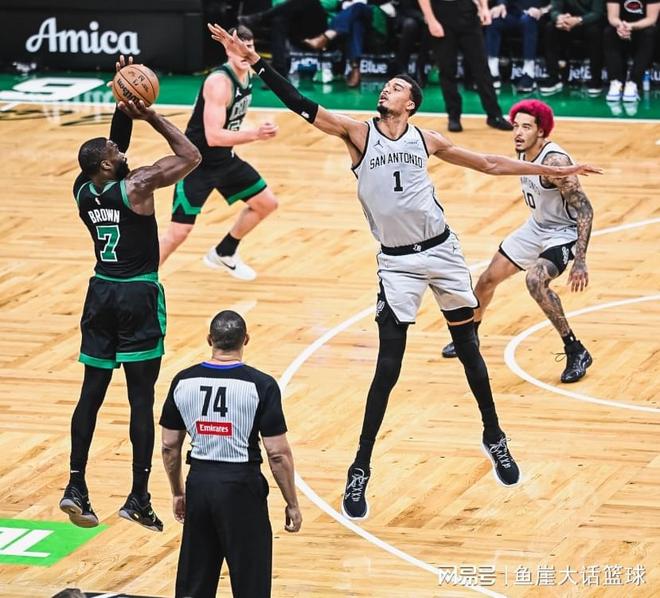 第三節(jié)比賽??怂怪型睹?,懷特命中三分后科塔拋投命中,巴恩斯罰球2中1后布朗拋投命中,??怂怪型睹泻笪陌鄟嗰R連得5分,加爾扎拋投得分后兩隊(duì)進(jìn)攻停滯,后續(xù)文班亞馬罰球得分,接下來兩隊(duì)進(jìn)攻再次斷電,文班亞馬率先得分后加爾扎命中三分,哈珀中投命中后謝爾曼搶斷反擊得分,凱爾特人領(lǐng)先3分。暫停后布朗命中三分,隨后馬刺打出一波7-2,三節(jié)比賽結(jié)束馬刺落后2分。第四節(jié)比賽馬刺打出一波5-0,懷特命中后福克斯中投命中,隨后謝爾曼、西蒙斯命中三分,奧利尼克命中三分后文班亞馬罰球得分,謝爾曼命中三分后懷特上籃得分,接下來兩隊(duì)打得激烈比分很膠著,末尾階段文班亞馬、尚帕尼幫助馬刺取得領(lǐng)先,最終馬刺逆轉(zhuǎn)凱爾特人贏球。