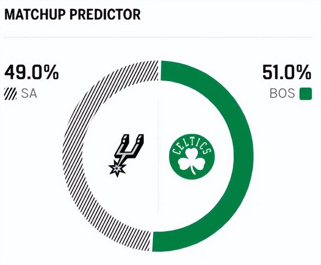 賽前,美媒ESPN對(duì)本場(chǎng)比賽進(jìn)行了勝率預(yù)測(cè),馬刺隊(duì)勝率為49.0% ,凱爾特人勝率則是51.0% ,算是平分秋色。