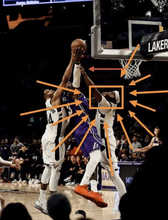 雄鹿官方曬的是一個整體圖,特納過來封蓋他,但實際上詹姆斯的左手給特納臉來了一肘子,結果詹皇只截了上半部分打手的動作,故意把自己肘擊特納的那一部分給截掉了…