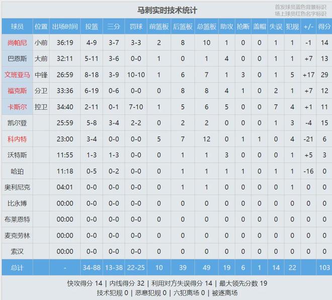 文班第二節(jié)7中4獨得11分,上半場受到犯規(guī)困擾,只打了12分鐘,砍下16分6籃板2搶斷3犯規(guī),正負值+21斷崖式領(lǐng)先。除了文班之外,其他球員的正負值最高的只有+14。文班利用速度和腳步變化,不斷戲耍戈貝爾,DPOY扎心了!