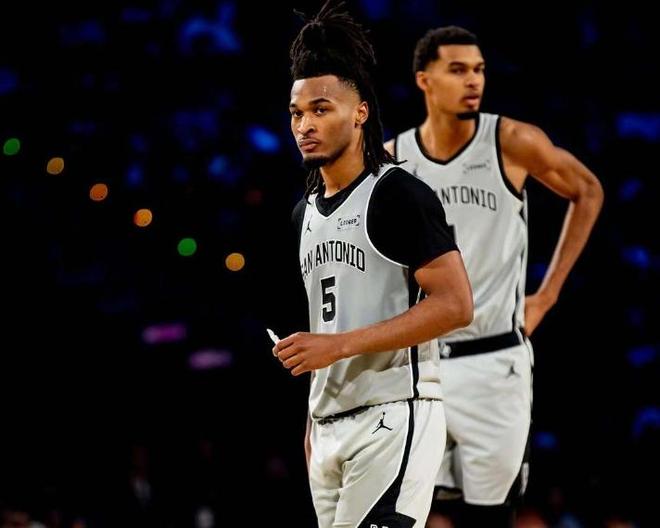 和文班亞馬攻防兩端統(tǒng)治比賽形成鮮明對(duì)比的是馬刺后場(chǎng)雙槍的拉胯,卡斯?fàn)柸珗?chǎng)比賽只有11投2中的發(fā)揮,還出現(xiàn)了全隊(duì)最高的7次失誤,這也是球迷怒斥他無(wú)間道的原因,福克斯的發(fā)揮也強(qiáng)不了多少,19中6僅僅得到了12分,而榜眼秀哈珀也是手感冰涼,替補(bǔ)登場(chǎng)5中0,三大后衛(wèi)集體夢(mèng)游,也讓文班亞馬的努力成為了無(wú)用功。