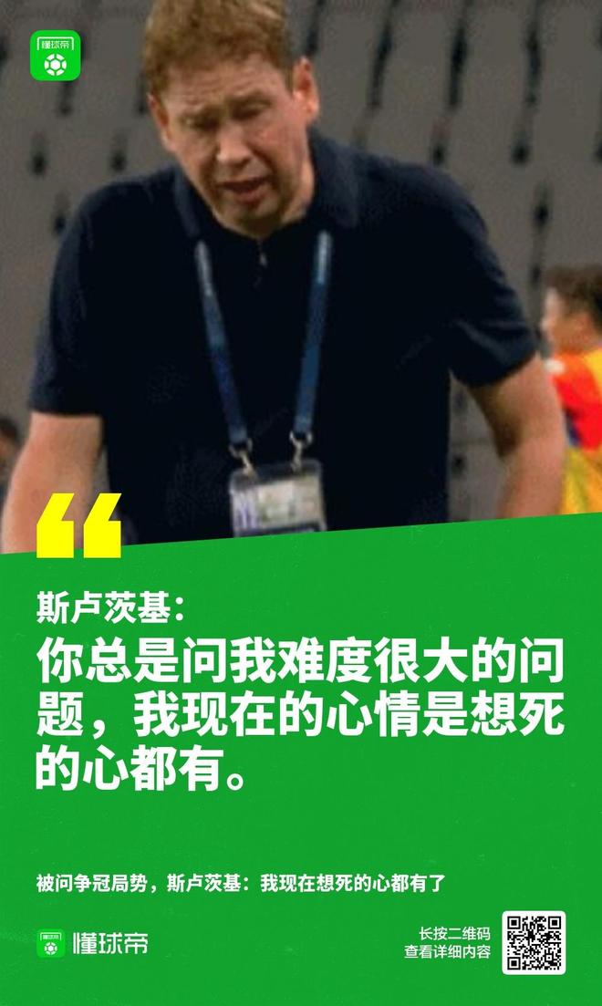 在山東打入第三球后,申花主帥斯盧茨基甚至在場邊流下眼淚。賽后發(fā)布會上,被記者問及爭冠形勢時,斯盧茨基崩潰地表示無法回答這個問題,因為自己想死的心都有了。如此直率而感性的言論,在教練界實為罕見。