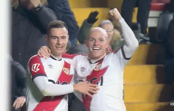 第21分鐘,巴列卡諾禁區(qū)左側(cè)角上任意球機會,勒戎操刀主罰大力兜射,皮球繞過人墻直奔球門而去,門將索里亞奮力將球擋出。第35分鐘,巴列卡諾前場右側(cè)連續(xù)轉(zhuǎn)移到左側(cè),洛佩茲禁區(qū)角上策應(yīng)直塞,查瓦利亞插上突入禁區(qū)倒三角回傳,瓦倫丁禁區(qū)內(nèi)一步迎球大力抽射,皮球稍稍高出橫梁。上半時補時階段,巴列卡諾快速反擊轉(zhuǎn)移到左側(cè),洛佩茲禁區(qū)前沿策應(yīng)接球調(diào)整一步斜吊禁區(qū)右側(cè),后點無人防守的德弗魯托斯迎球凌空怒射,索里亞撲救失誤,皮球彈入網(wǎng)窩,巴列卡諾1:0打破僵局。