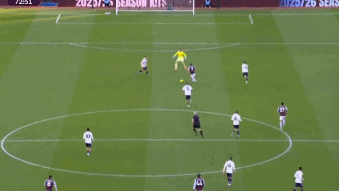 比賽的第72分鐘,蒂萊曼斯后場(chǎng)長(zhǎng)傳,麥金在前場(chǎng)得球。令人驚訝的是,諾丁漢森林門將維克托卻在毫無必要的情況下棄門出擊,足足跑出了30米。