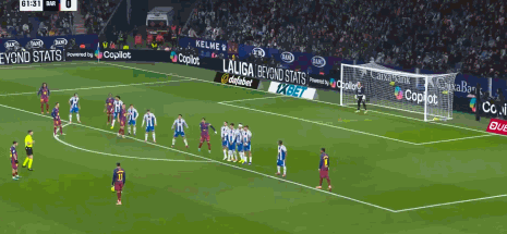 第63分鐘,拉菲尼亞任意球攻門(mén),皮球擊中人墻偏出球門(mén)