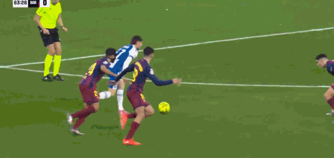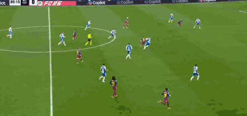 第3分鐘,亞馬爾傳球,費(fèi)蘭準(zhǔn)備不及沒(méi)有處理好