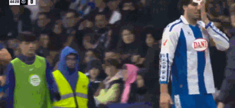 第21分鐘,比賽第21分鐘,全場(chǎng)鼓掌致意前西班牙人隊(duì)長(zhǎng)達(dá)尼-哈爾克