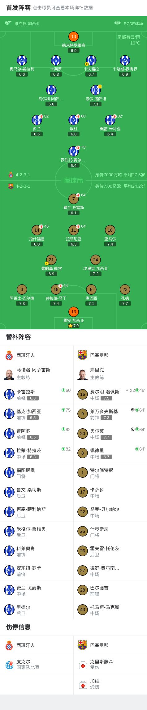 第45分鐘,卡夫雷拉頭球攻門(mén)撞倒埃里克-加西亞,前者面部出血