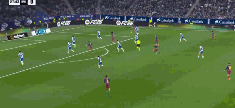 第3分鐘,亞馬爾傳球,費蘭準備不及沒有處理好