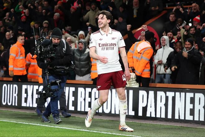 失誤后迅速扳平比分,無疑是最好的穩(wěn)定軍心,阿森納踢得更加從容,因傷缺席榜首大戰(zhàn)而獲得難得休息機會的賴斯在下半場主宰了比賽——這位阿森納隊史標王先是接厄德高的回敲迎球怒射反超比分,隨后又接薩卡的妙傳推射鎖定勝局。