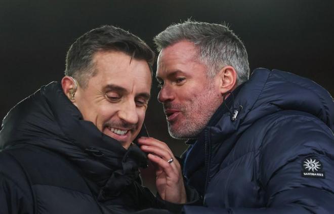 這兩位天空體育評論員,無論是在電視臺的節(jié)目中,還是在兩人合作的《The Overlap》播客里,都經(jīng)常需要在賽季開打前給出自己的預(yù)測。前曼聯(lián)隊長內(nèi)維爾永遠(yuǎn)都會力挺老東家進(jìn)入前四。盡管紅魔在最近幾個賽季狀態(tài)幾經(jīng)起伏,但內(nèi)維爾幾乎是不假思索地就將曼聯(lián)列入前四名單??ɡ裨缫讯啻尉痛苏{(diào)侃他,而內(nèi)維爾自己也常對這份“永不改口”的預(yù)測一笑置之。