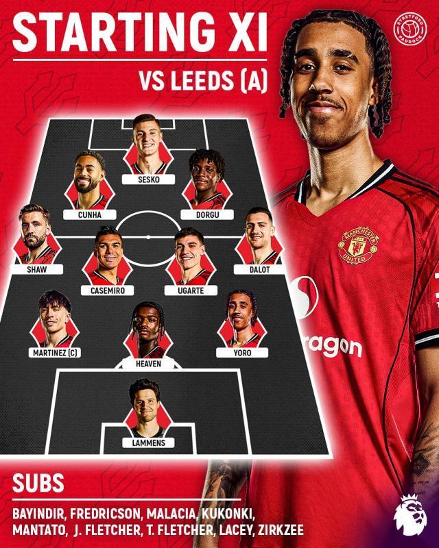 曼聯(lián)首發(fā):拉門斯/約羅、希文、利桑德羅·馬丁內(nèi)斯/達(dá)洛特、烏加特、卡塞米羅、盧克·肖/多爾古、庫尼亞/舍什科