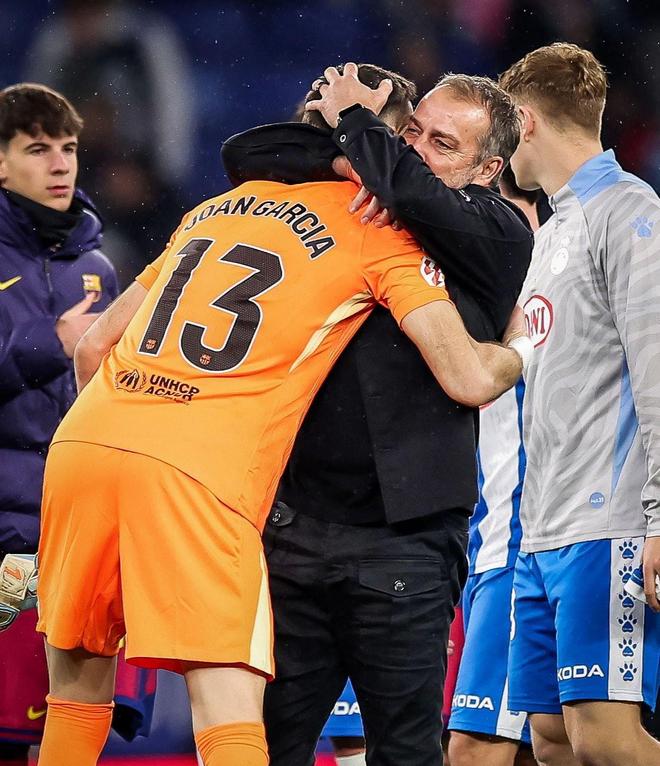 最精彩的一幕出現(xiàn)在上半場補(bǔ)時(shí)階段:佩雷·米利亞接卡洛斯·羅梅羅精準(zhǔn)傳中,近距離頭球攻門,皮球直奔死角。千鈞一發(fā)之際,加西亞飛身單掌將球托出橫梁!全場瞬間沸騰,而這一次,歡呼屬于巴薩。