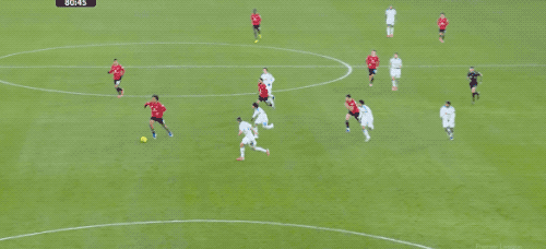第30分鐘,曼聯(lián)三名后衛(wèi)配合,盧克肖開出角球,利馬回做,達洛特原地擺腿的射門,放了高射炮。