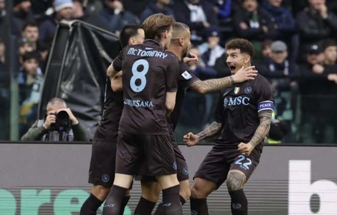 那不勒斯排出433進(jìn)攻陣型。埃爾馬斯、霍伊倫和內(nèi)雷斯組成進(jìn)攻三叉戟。斯皮納佐拉、洛博特卡、麥克托米奈和波利塔諾4中場(chǎng)聯(lián)袂出擊。胡安-熱蘇斯、阿米爾-拉赫馬尼和迪洛倫佐3后衛(wèi)首發(fā)出戰(zhàn)。瓦尼亞-米林科維奇-薩維奇擔(dān)任首發(fā)門將。那不勒斯首發(fā)陣容總身價(jià)2億歐元,而拉齊奧首發(fā)陣容總身價(jià)只有1億歐元。