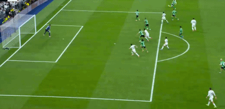 在姆巴佩缺席的情況下,阿隆索讓貢薩洛首發(fā)出場(chǎng),維尼修斯、羅德里戈分居兩翼。比賽的第20分鐘,羅德里戈主罰左側(cè)任意球橫傳,無(wú)人盯防的貢薩洛頭球沖頂破門(mén),1比0!