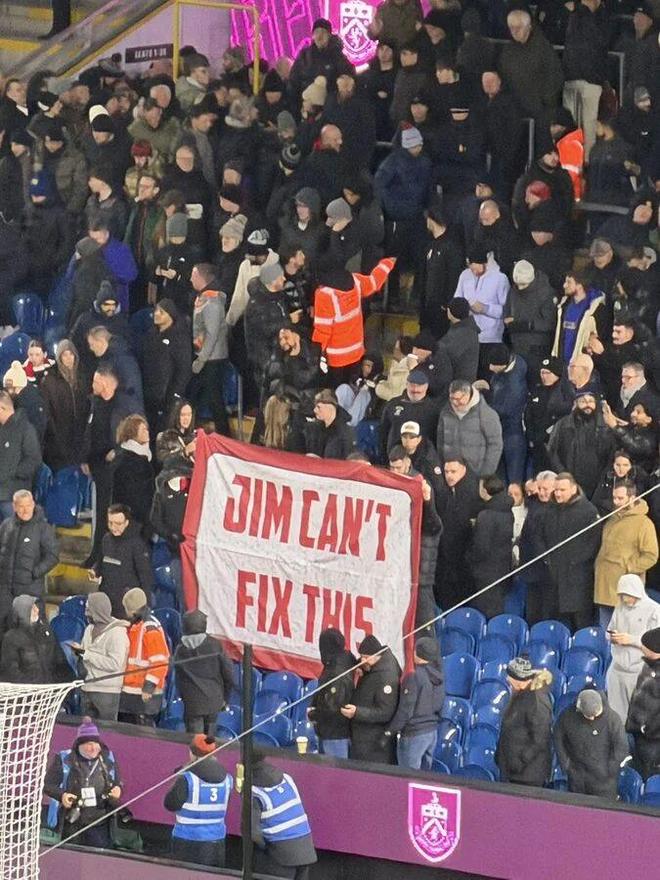 紅魔擁躉也表達(dá)了對(duì)老板吉姆·拉特克里夫爵士的不滿,看臺(tái)上有一條橫幅,上面寫著:拉爵搞不定(Jim can’t fix this)。