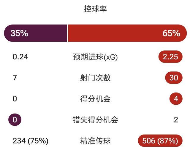 賽后一看數(shù)據(jù),射門次數(shù)7-30,射正次數(shù)1-10,控球率35%-65%。曼聯(lián)客場踢出這優(yōu)勢,愣是沒轉(zhuǎn)化成勝利!