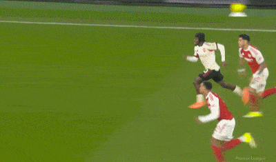 第27分鐘,拉亞出擊將加布里埃爾的回傳球解圍,但沒(méi)有踢遠(yuǎn),布拉德利得球直接吊門,這球擊中橫梁彈出。