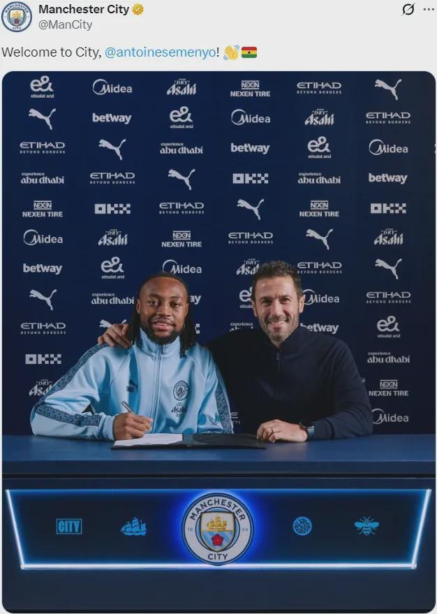 官方:曼城宣布從伯恩茅斯簽下了塞梅約,這名邊鋒簽下了一份為期五年半的合同。